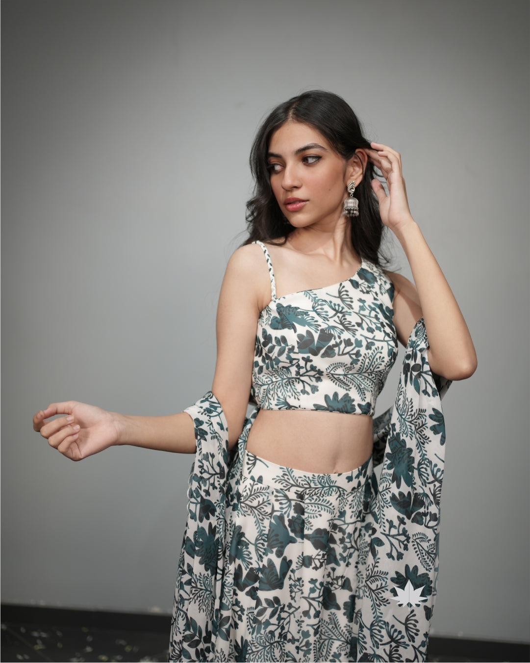 Floral Printed Co-ord Set With Drape