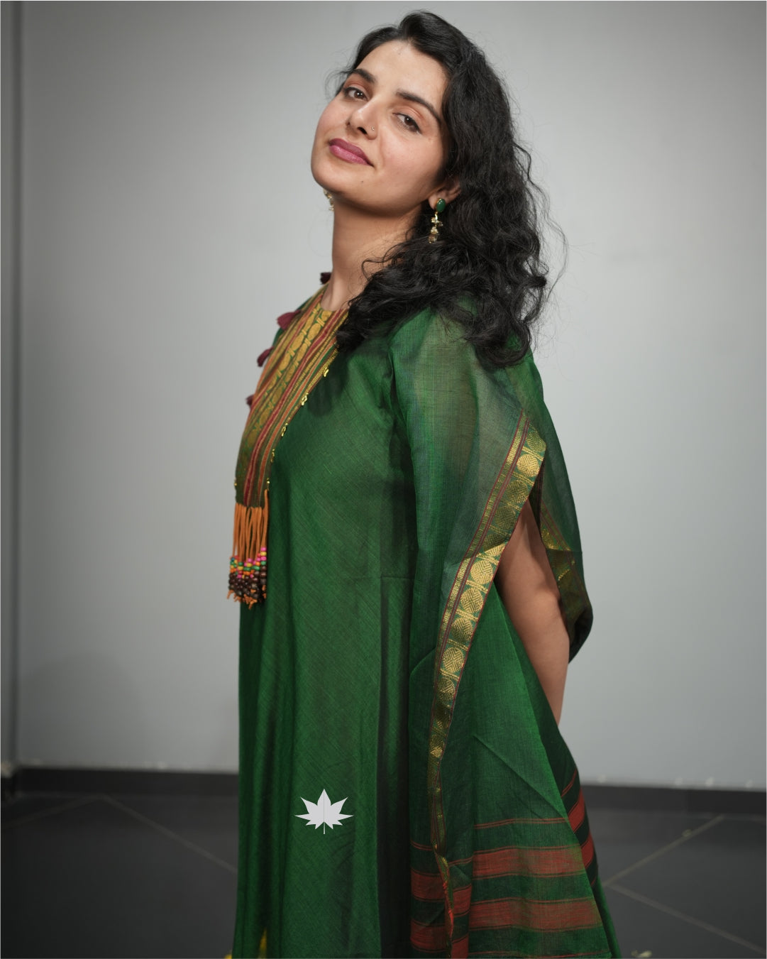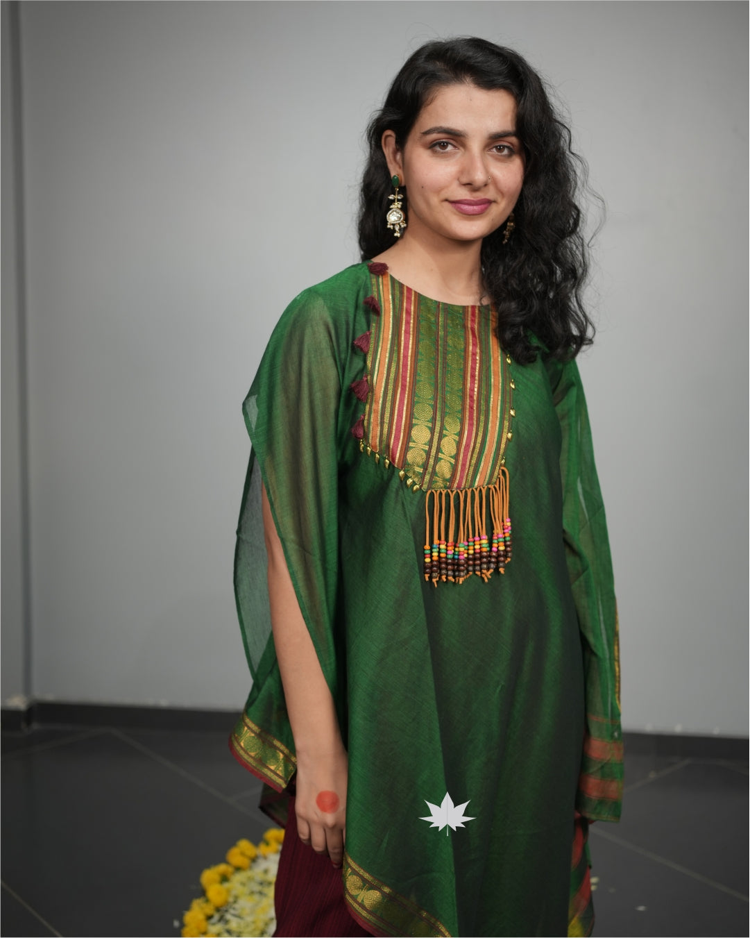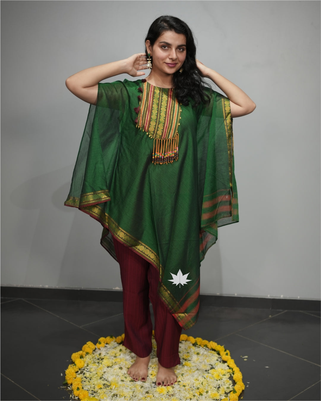 Green And Maroon Kaftan Set