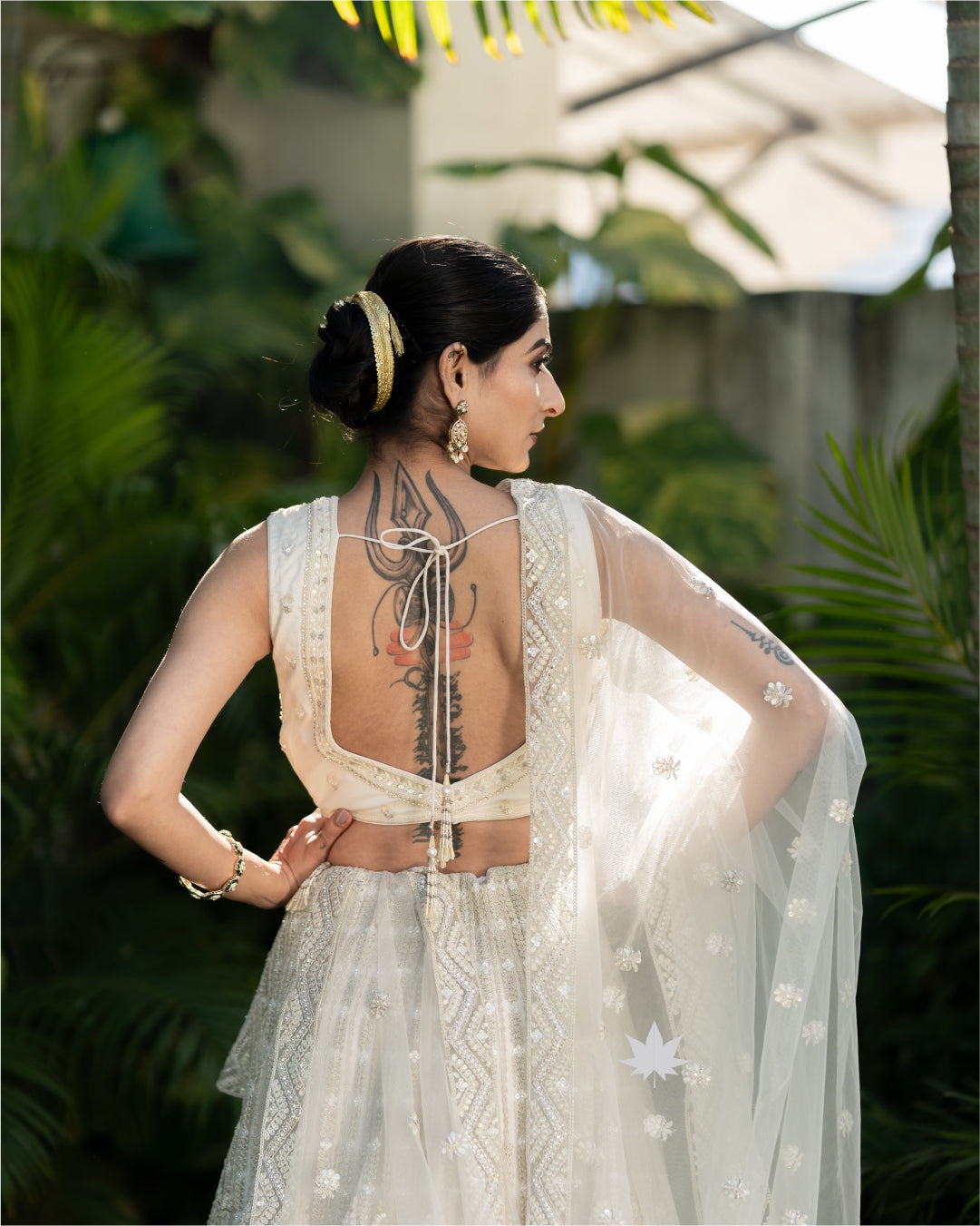 Drape yourself in the enchanting hues of Mystic Blue, a lehenga set that blends timeless elegance with modern finesse. Featuring a striking floral print lehenga and a delicately embroidered choli, this ensemble is designed for those who love to make a statement. The highlight? A flowy, structured dupatta, beautifully draped over one shoulder to add an effortless regal touch.
