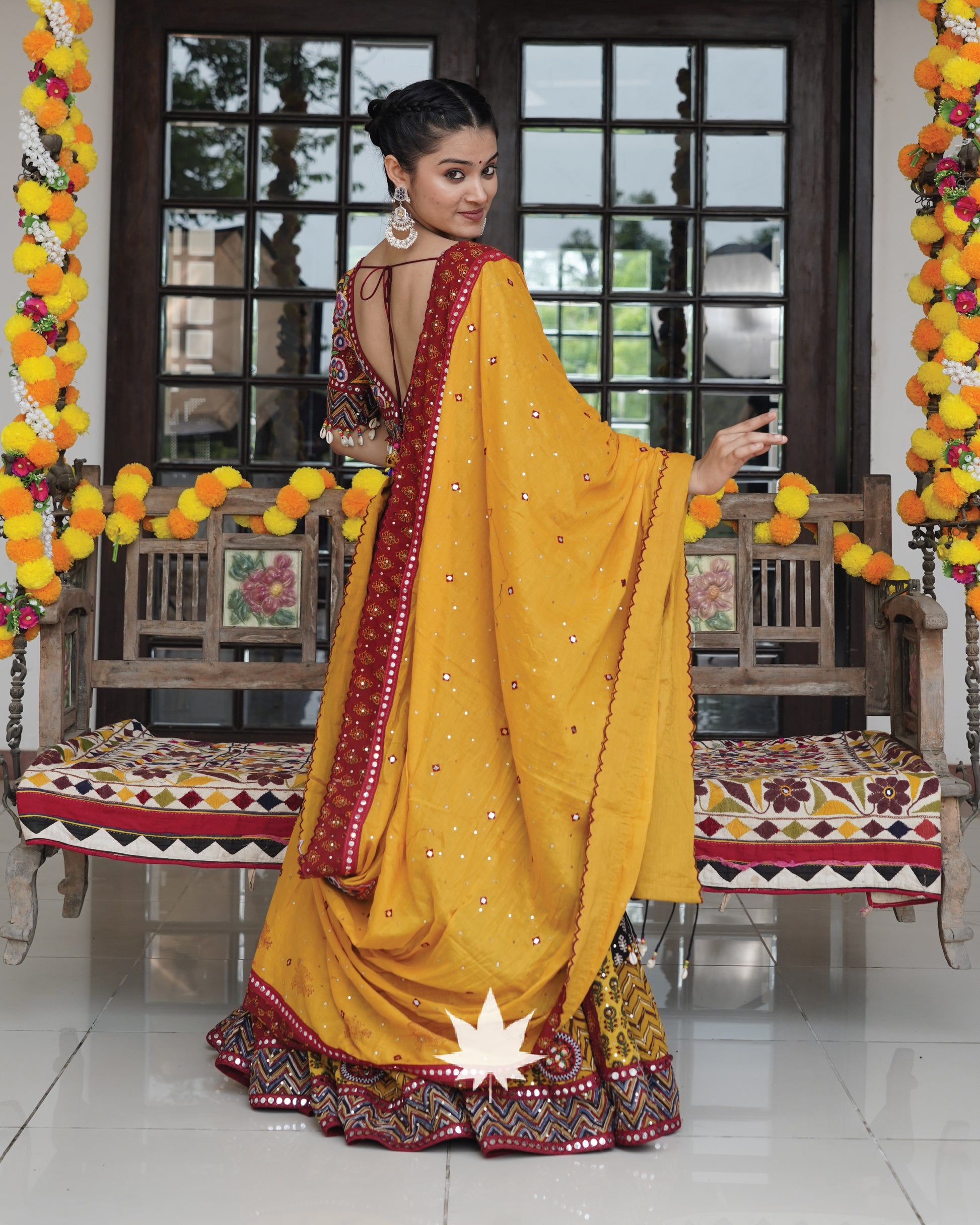 Maroon And Yellow Patchwork Gamthi Chaniya Choli Set