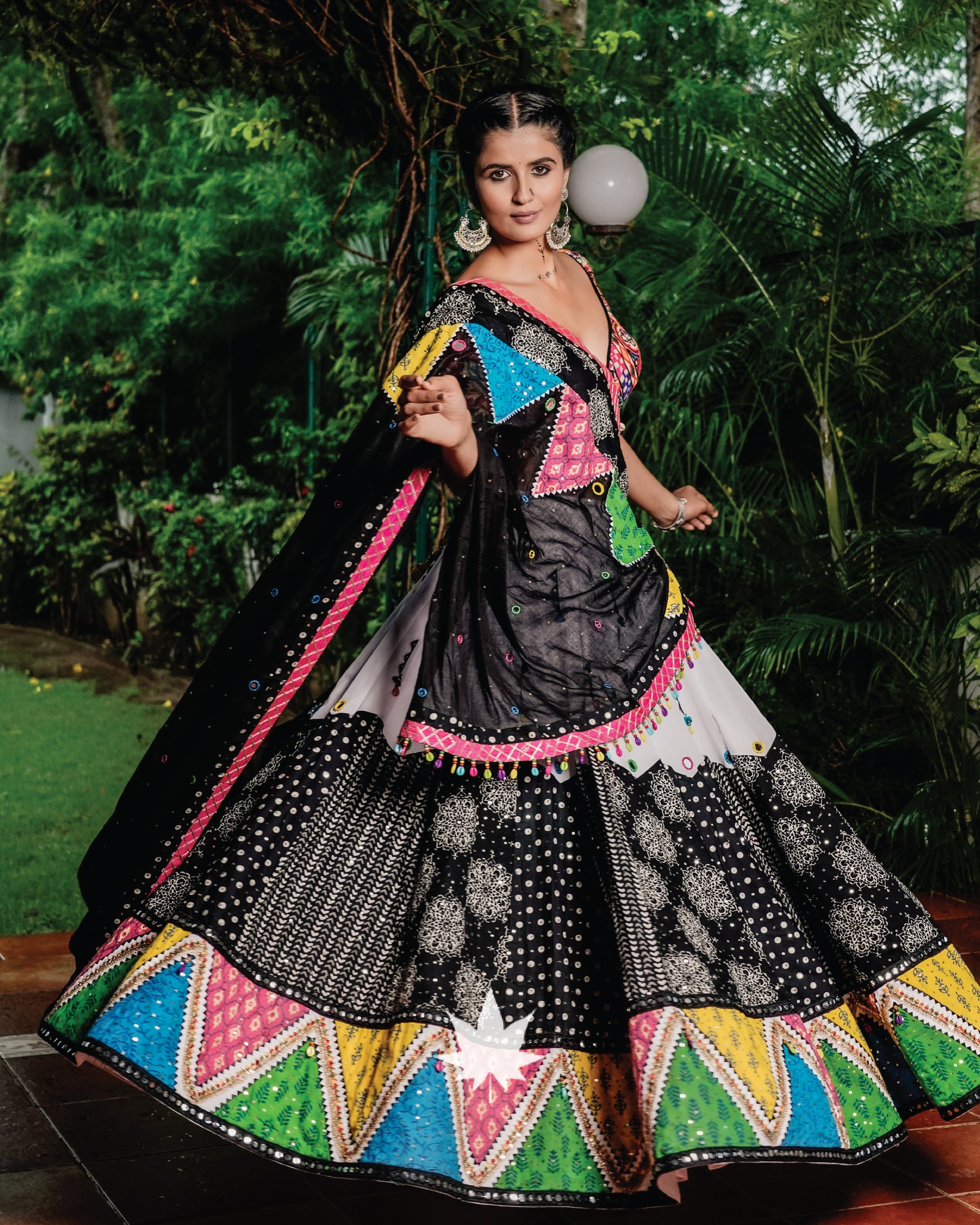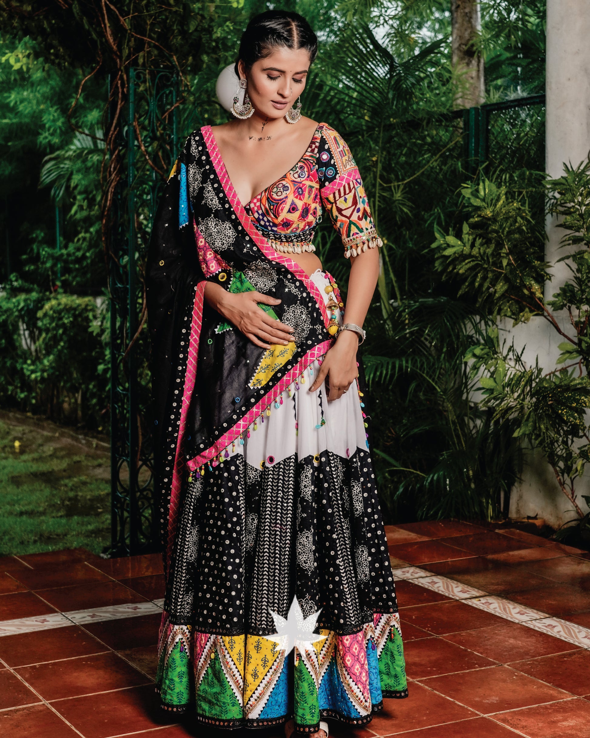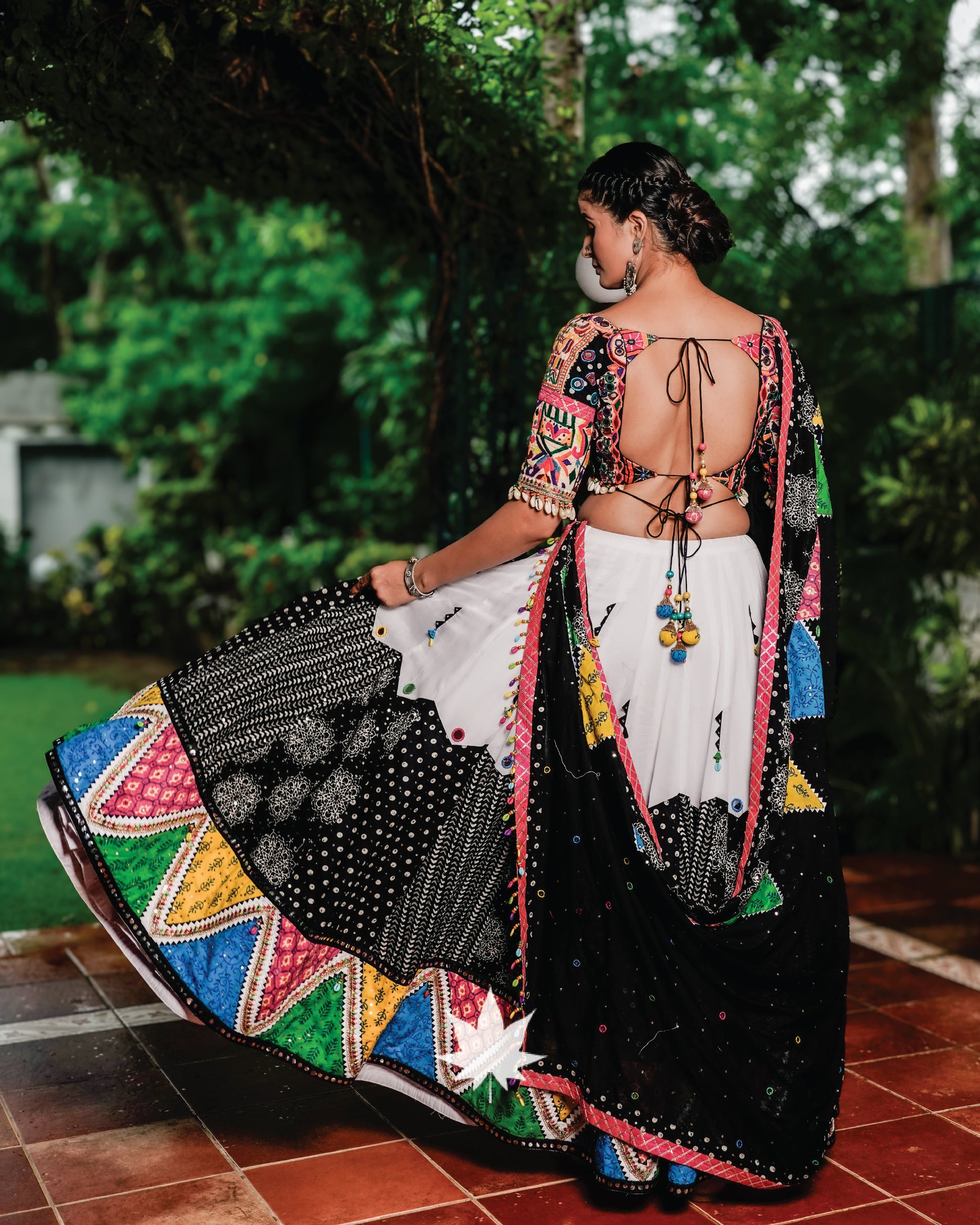 Multicolor Patchwork Black And White Chaniya Choli Set