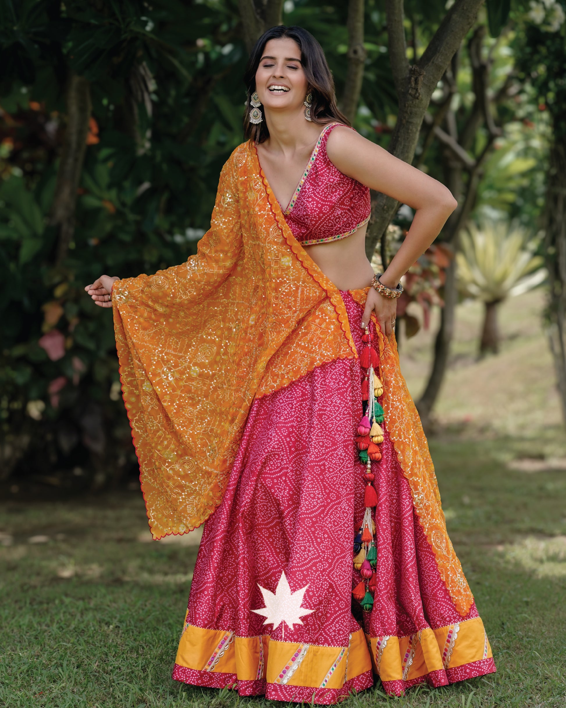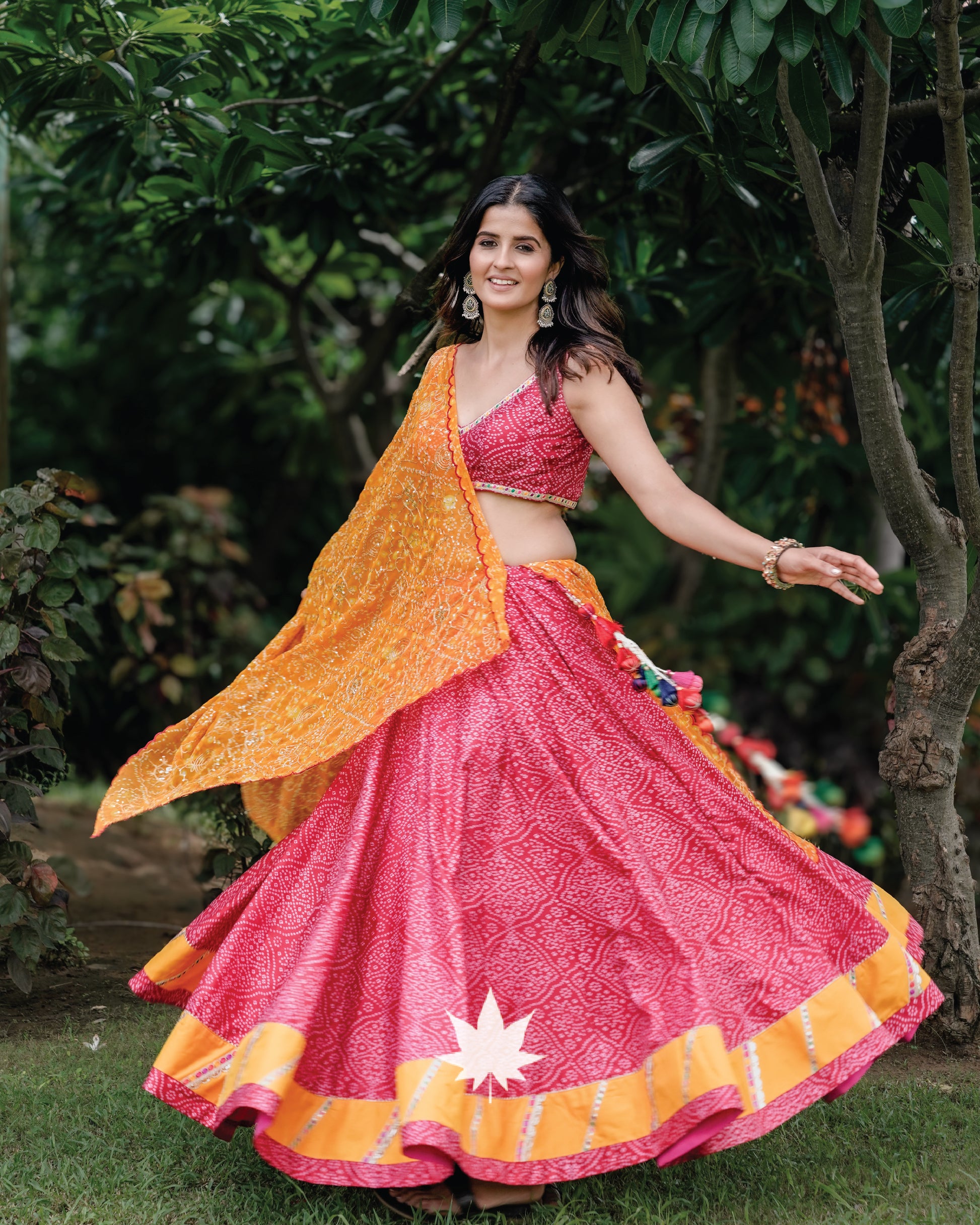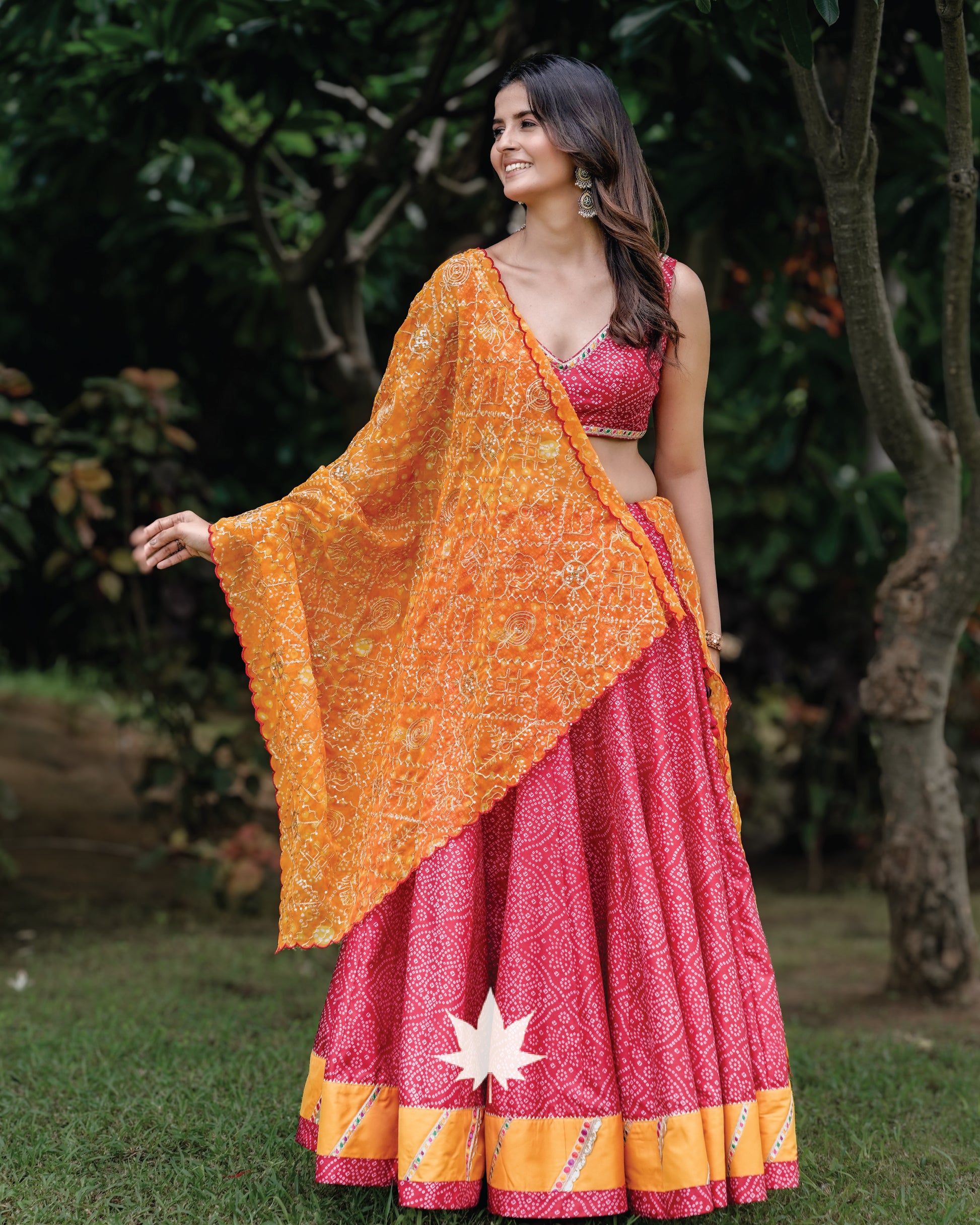 Red And Orange Silk Bandhani Chaniya Choli Set